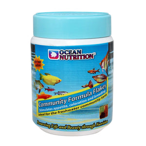Ocean Nutrition Community Formula Flakes is a delicious blend of the finest ingredients and a smart mix of seafood and vegetable protein. The challenge here was to elaborate a flake for fish with very different needs often coming from very different origins.