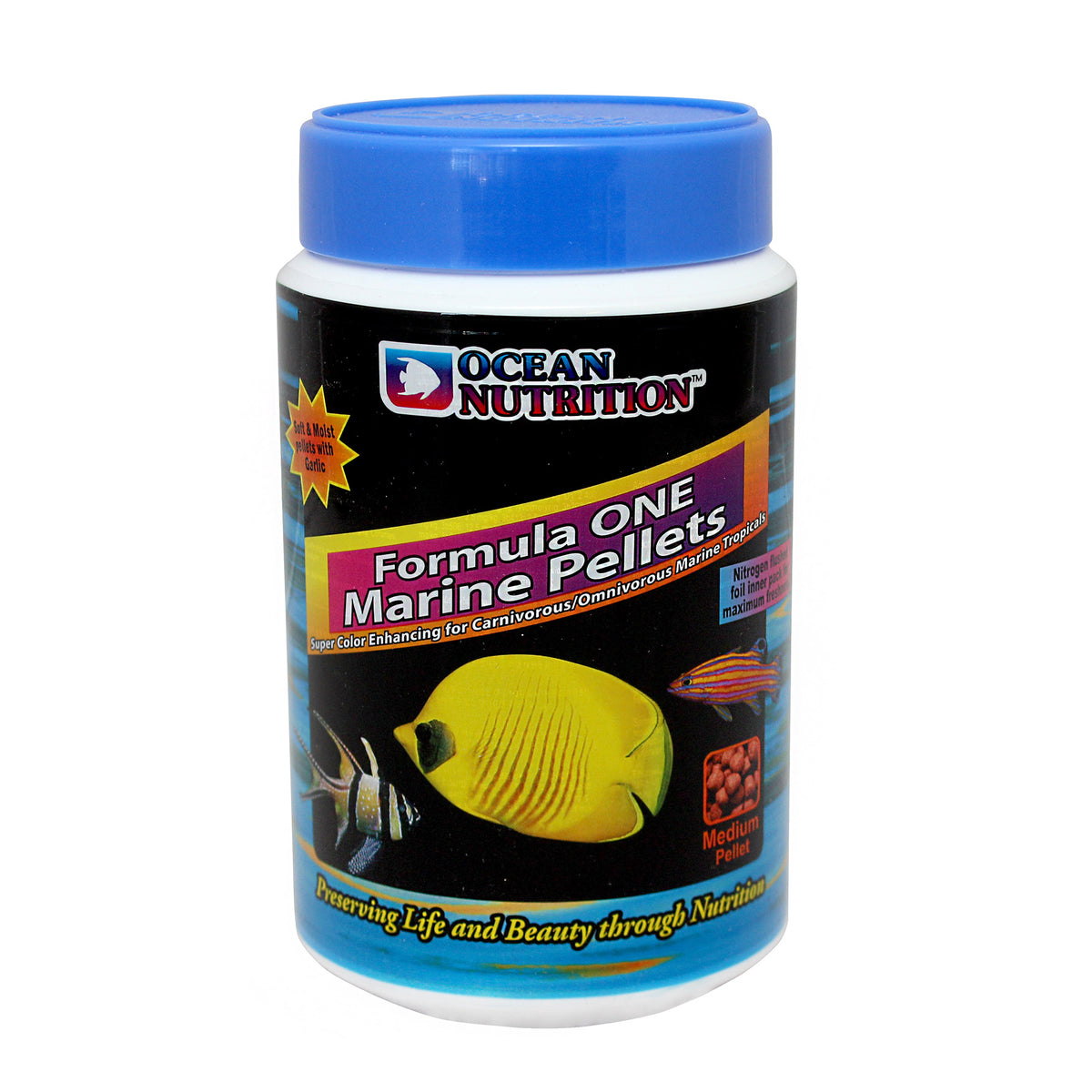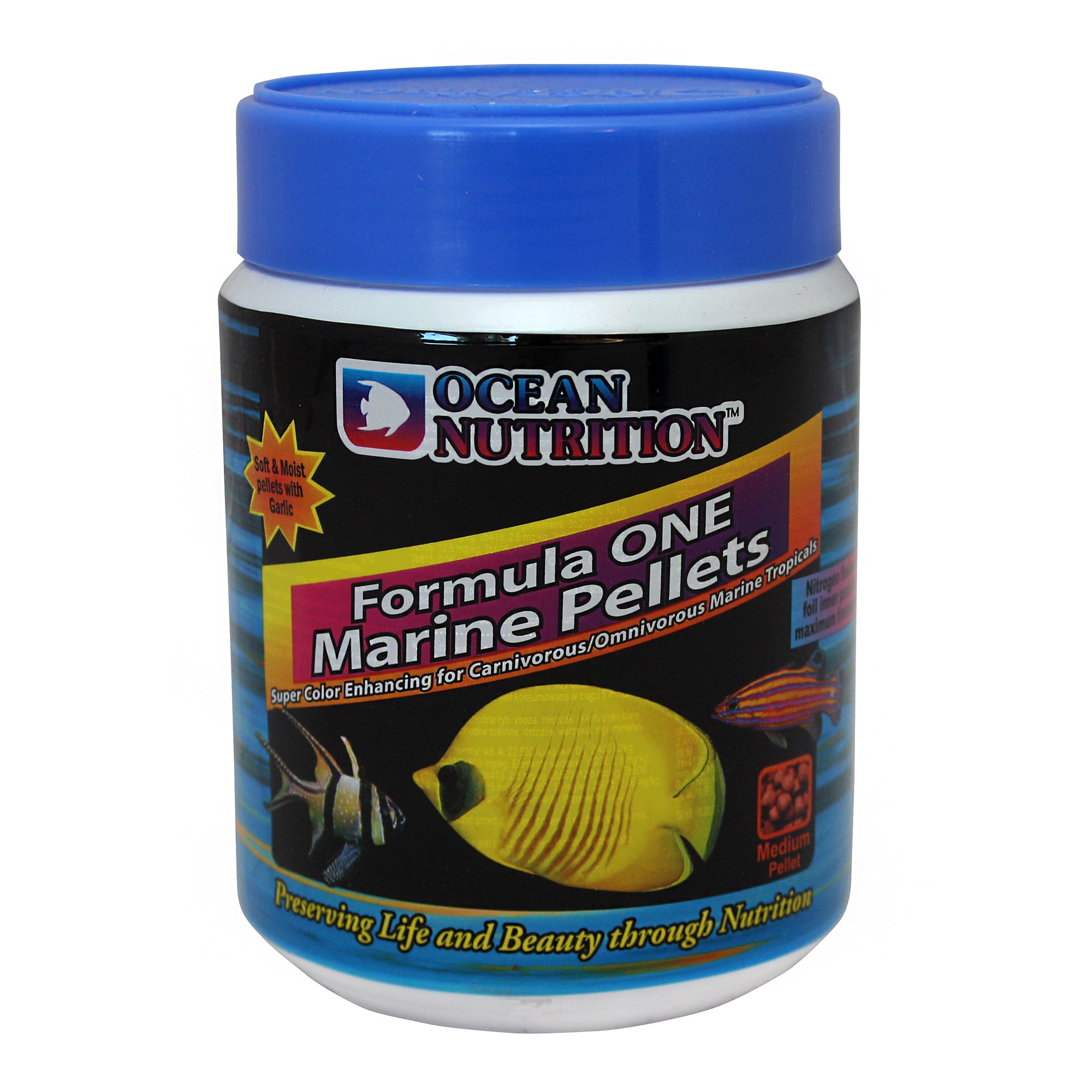 Ocean Nutrition Formula 1 Marine Pellet is a perfectly soft and moist pellet packed in nitrogen flushed foil bags for maximum freshness. Main characteristics are increased palatability and easy digestion. Contains garlic to improve disease resistance, krill for colour enhancement, fresh seafood, plankton and Spirulina. This food is intended for carnivorous and omnivorous fish.