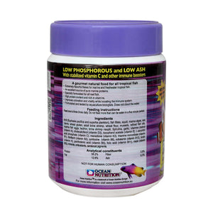 The strategic blend of seafood products used in Ocean Nutrition Prime Reef Flakes translates in some serious protein in a jar. Highly palatable, even the most finicky fish will find it difficult to resist. Key ingredients include fresh fish protein and fresh seafood: salmon, plankton, squid, clams, herring, brine shrimp.