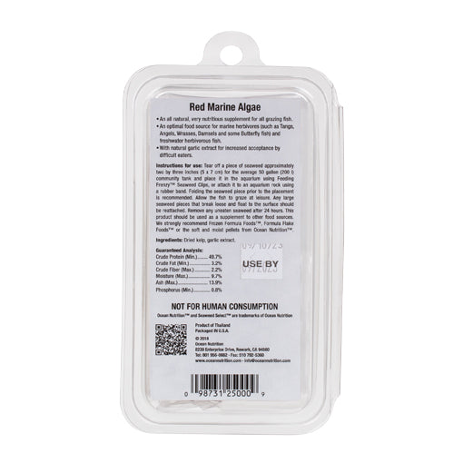 Tear off a piece of seaweed. Fold it and place it in a Feeding Frenzy Seaweed Clip. Attach the clip to the inside surface of your aquarium using the suction cup. Allow the fish to graze. Remove any uneaten seaweed after several hours. This product is a daily supplement to other food sources. For complete balanced nutrition, feed Seaweed Selects as a tasty treat alongside Ocean Nutrition Formula Foods.