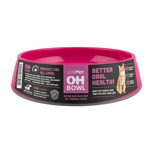 The OH Bowl for cats is a cat feed bowl with the bonus of a daily pet dental care that fits easily into a pet owner’s life. With its fine rubber teeth designed to encourage licking after every meal by trapping food particles, any fur on the tongue should be lifted and trapped onto the bowl’s teeth before the cat can ingest it. With daily use this could help reduce or prevent hairballs developing. A welcome option for any cat owner.