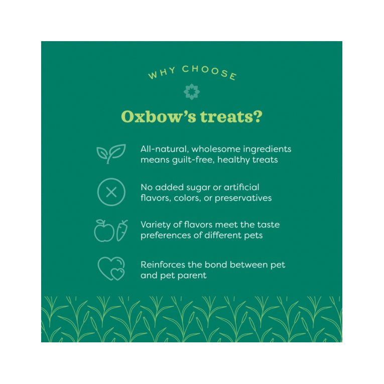 Feed Oxbow treats to add variety and enrichment to your pet’s diet.
