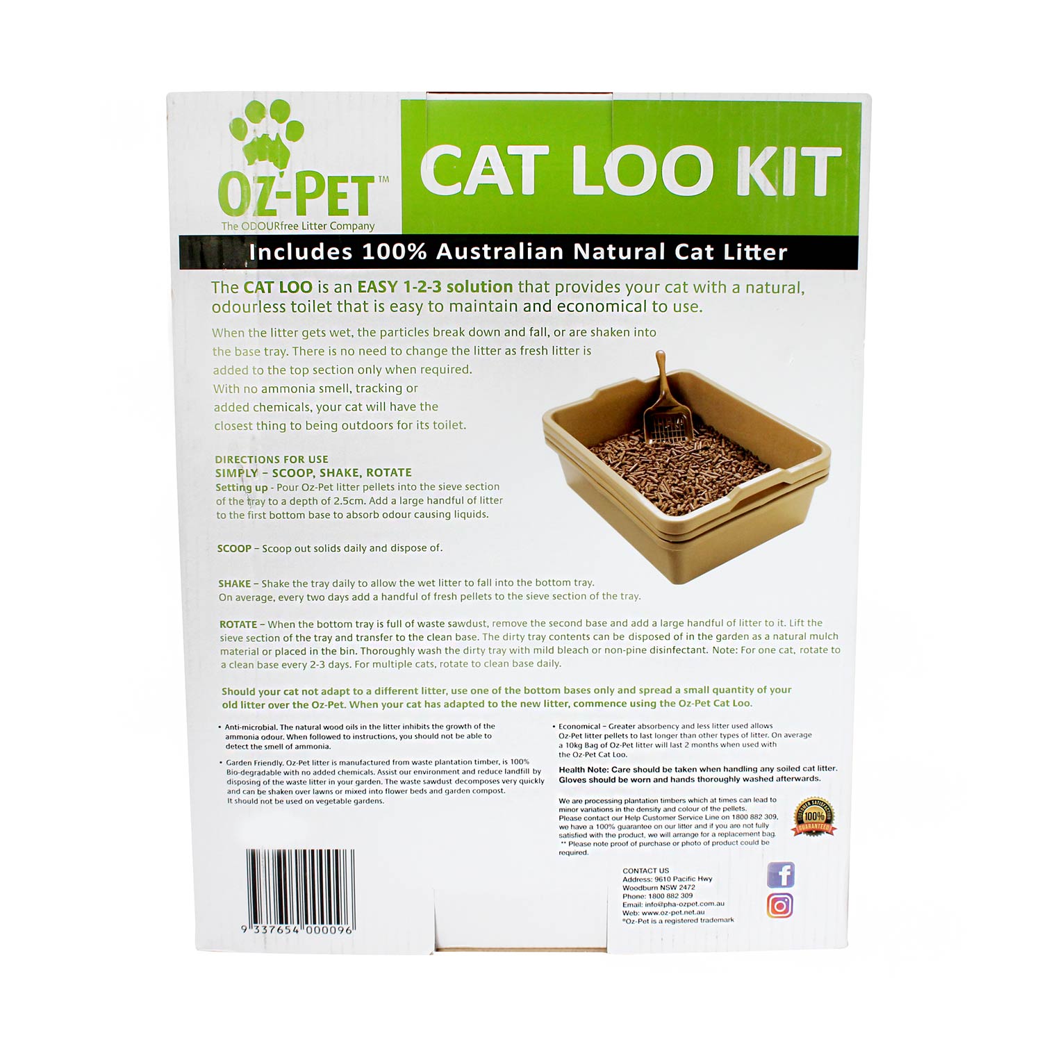 Should your cat not adapt to a different litter, use one of the bottom bases only and spread a small quantity of your old litter over the Oz-Pet. When your cat has adapted to the new litter, commence using the Oz-Pet Cat Loo.
