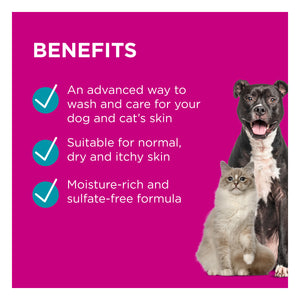 PAW NutriDerm Replenishing Shampoo is pH balanced and veterinary recommended for pets with itchy, dry and normal skin.
