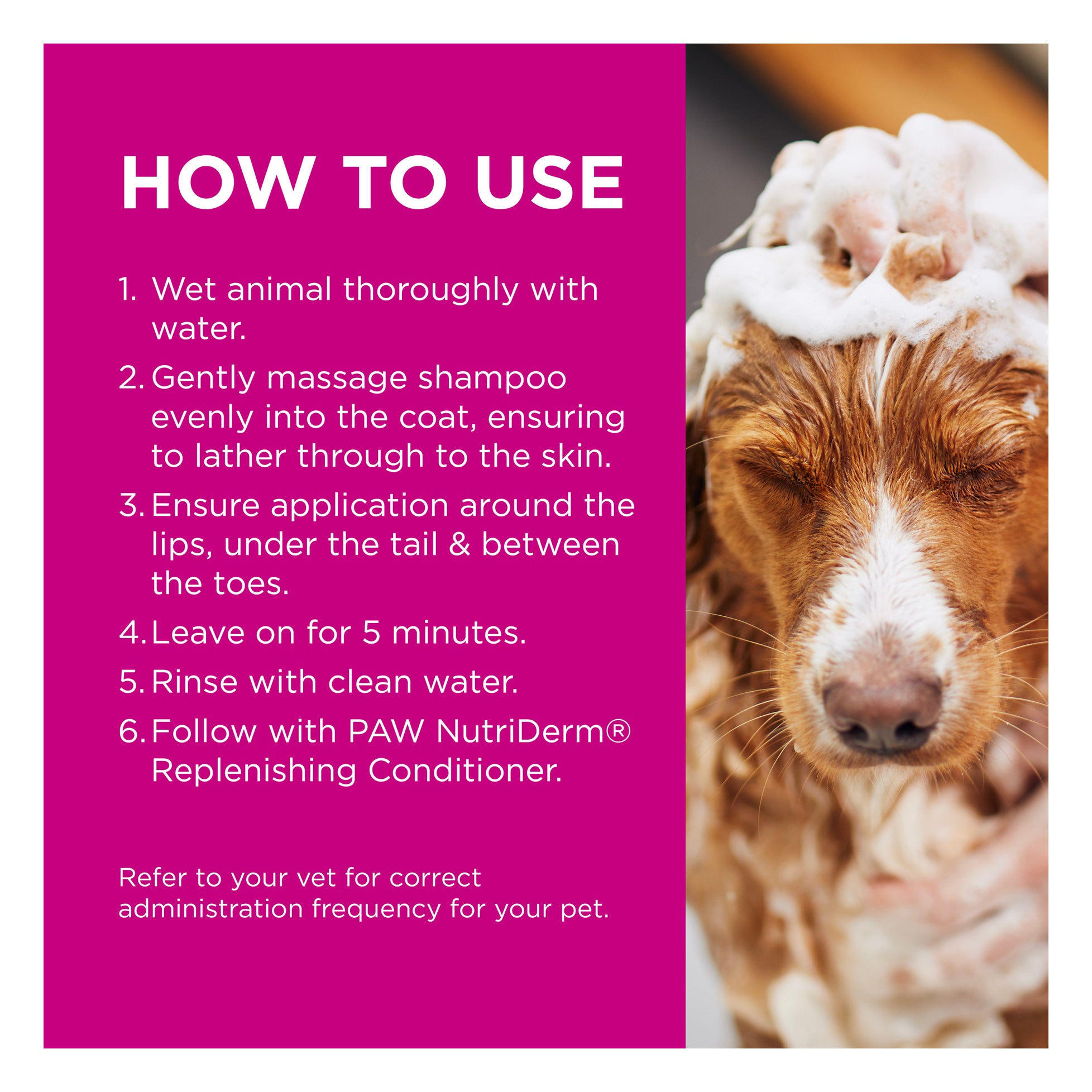 PAW NutriDerm Replenishing Shampoo effectively soothes, cleanses and provides symptomatic relief for dogs and cats with normal, dry and itchy skin.
