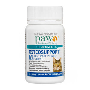 PAW OsteoSupport Joint Care Powder for Cats is clinically proven to provide fast, effective relief from arthritic symptoms. This highly palatable green lipped mussel powder provides advanced care for arthritic cats.