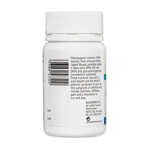 The 100% natural green lipped mussel powder (Perna128) is manufactured using lower temperatures for a highly concentrated product. OsteoSupport Joint Care Powder also includes a natural source of glycosaminoglycans (including Chondroitin 6 Sulfate) that are key nutrients required for cartilage production.