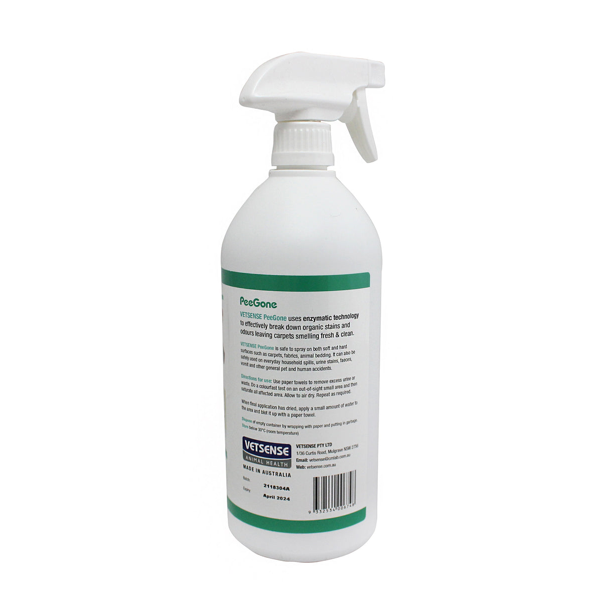 PeeGone is formulated with natural enzymes to remove pets' urine, faeces and vomit from flooring or furniture. PeeGone is safe to use on both soft & hard surfaces such as carpets, fabrics and animal bedding. It can also be used on everyday household spills, urine stains, faeces, vomit & other general pet and human accidents.