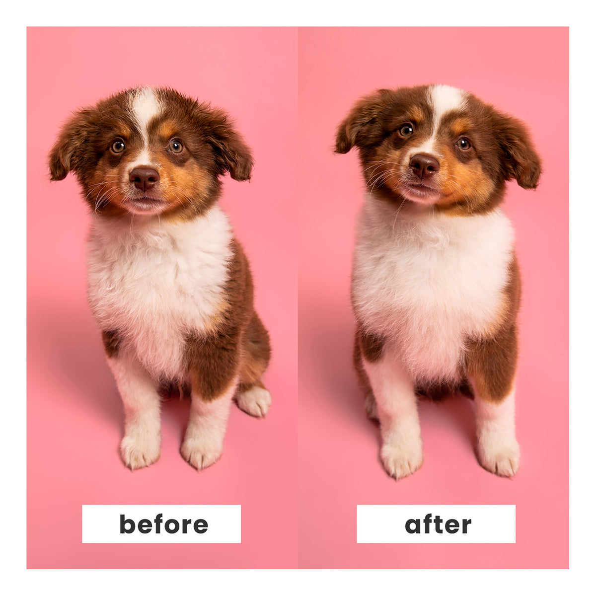 Start from the back of your dog and work your way to the front, brushing in the direction of hair growth. Keep your eye out for tangles that need extra attention and gently brush through them using short but fast strokes, holding the knot close to the skin. Patience is key!