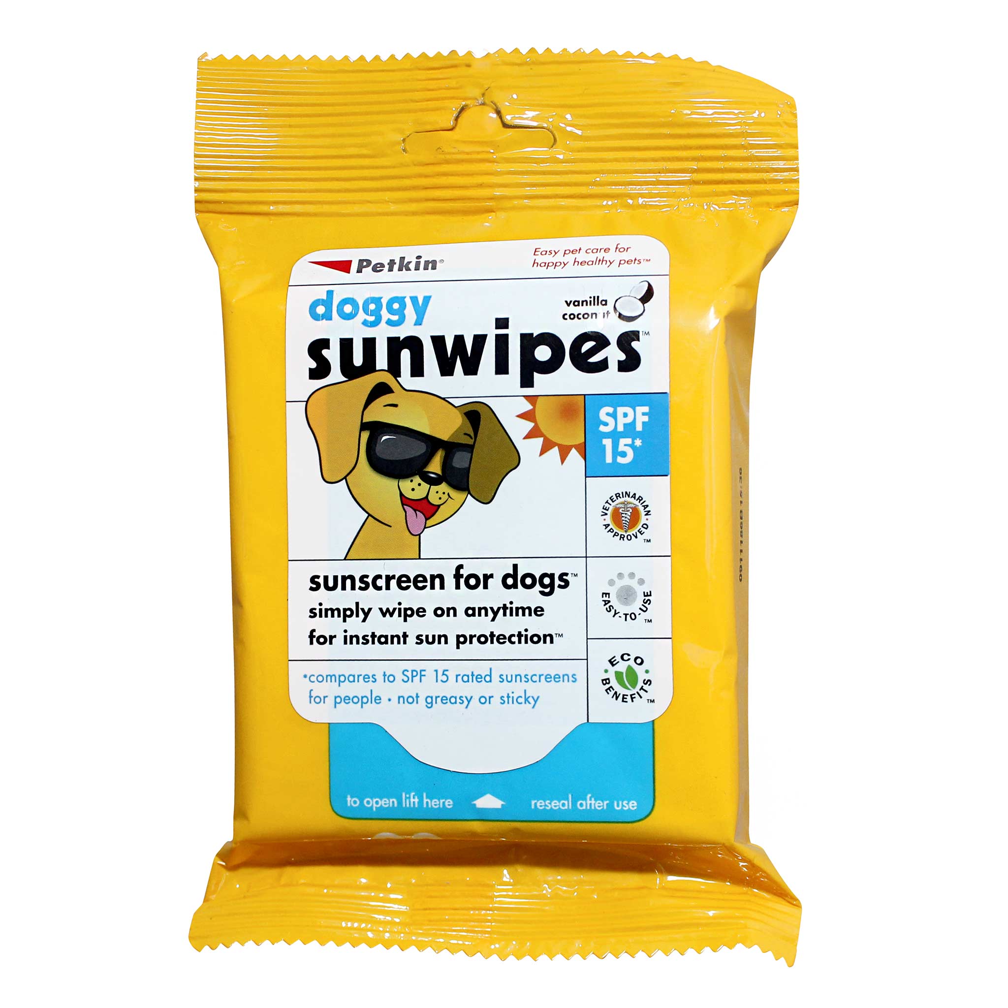 Petkin Doggy Sunwipes provide extra protection to the nose, ears, muzzle and pink areas on dogs that are more exposed.