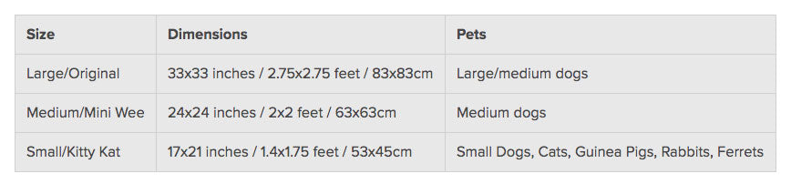 Choose a size based on your pet’s size or the size of the location where you will place the Pet Loo.