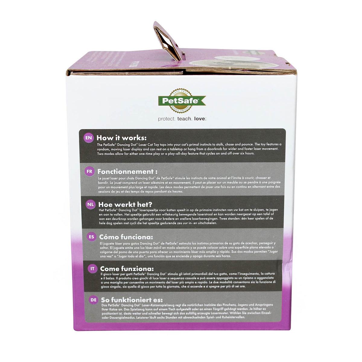 Simply place the laser cat toy on any elevated, flat surface or hang it on a doorknob. With two play mode options and a random, moving laser display, the Dancing Dot toy is a fun way to keep your cat healthy and active.