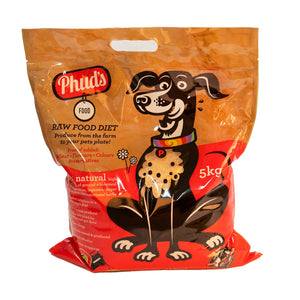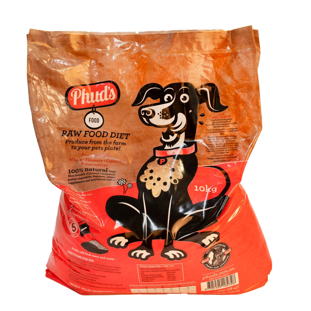 Phud's Dog Food is designed to be used in conjunction with a fresh or cooked meat diet.