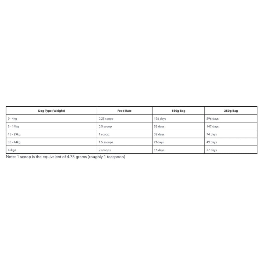 Start your dog on a small pinch of the Digestive K9 powder sprinkled over and mixed into their food. Continue to increase this over time until you reach the recommended dosage rate for your dog’s size.