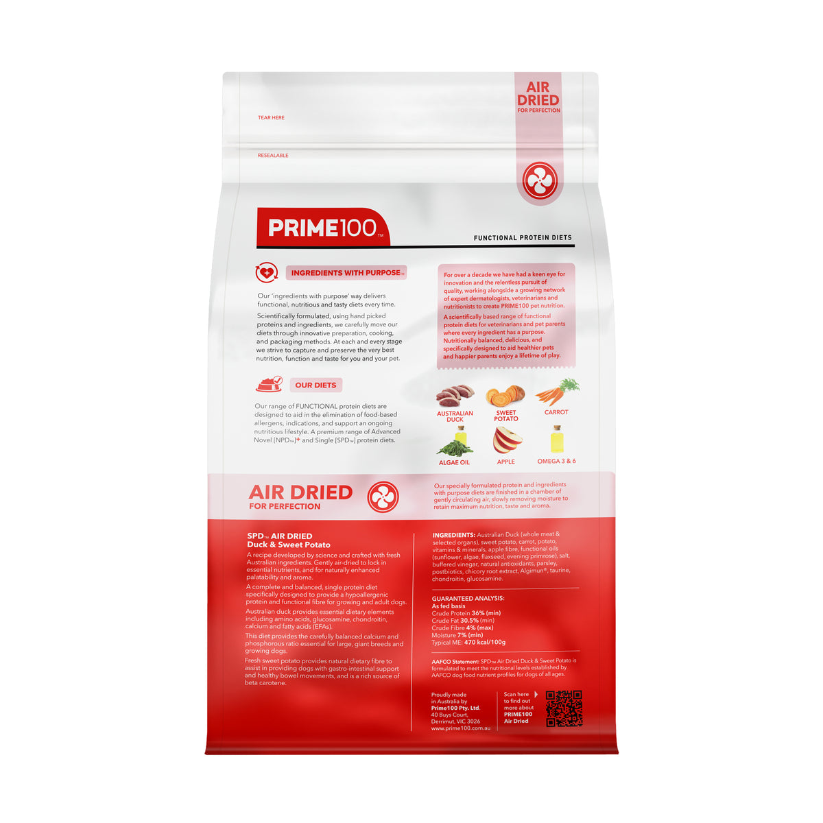 Prime100 SPD sk-G200F is a vet approved, single-protein diet made from Australian duck and sweet potato. This diet is designed by science with hypoallergenic protein, functional and fresh ingredients to form a complete and balanced diet.