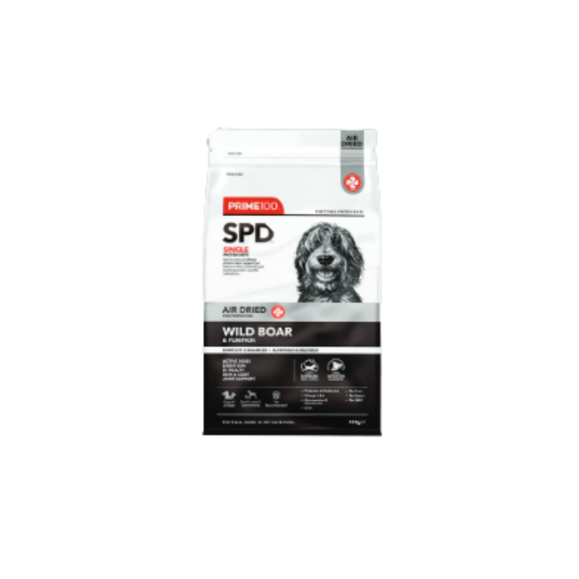 Prime 100 SPD Air Dried Wild Boar & Pumpkin is a novel, single protein diet made with