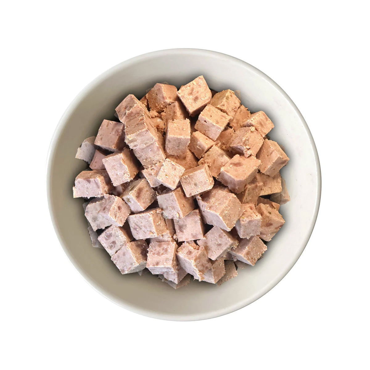 Prime 100’s functional protein, select ingredient diets are made in small batches and packed raw in their final packaging, then gently steam cooked and allowed to rest for up to 24 hours. Serve straight from your fridge!