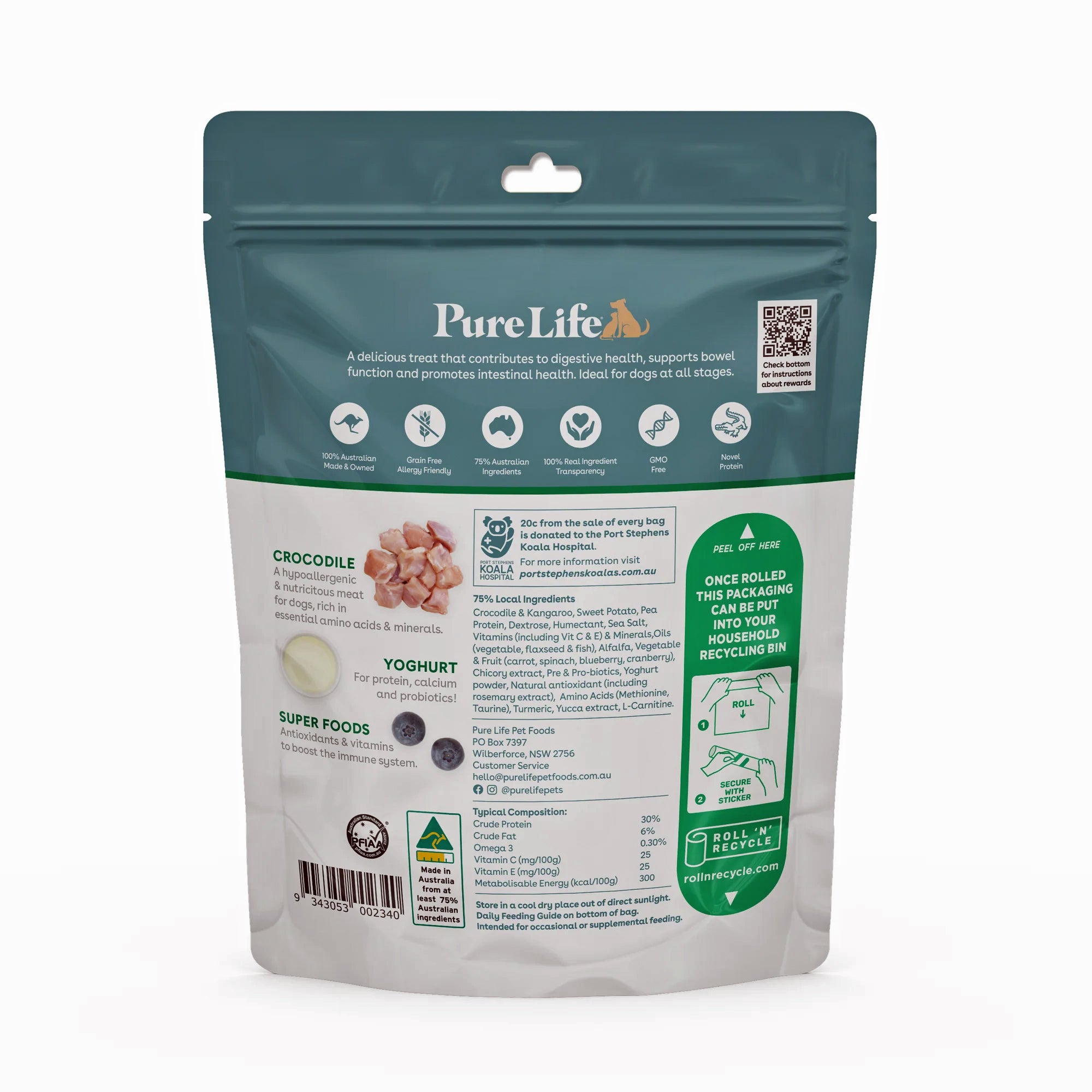 Pure Life Hypoallergenic Crocodile Treats are nutritious and tasty treats that contribute to digestive health, support bowel function and promote intestinal health. And as we know, Happy Gut = Happy Mind!