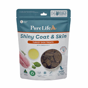 Pure Life Shiny Coat & Skin Treats are indulgent treats packed with vitamins and especially Flax seed and Fish oils for that shiny coat and soft skin, a dogs' dream.