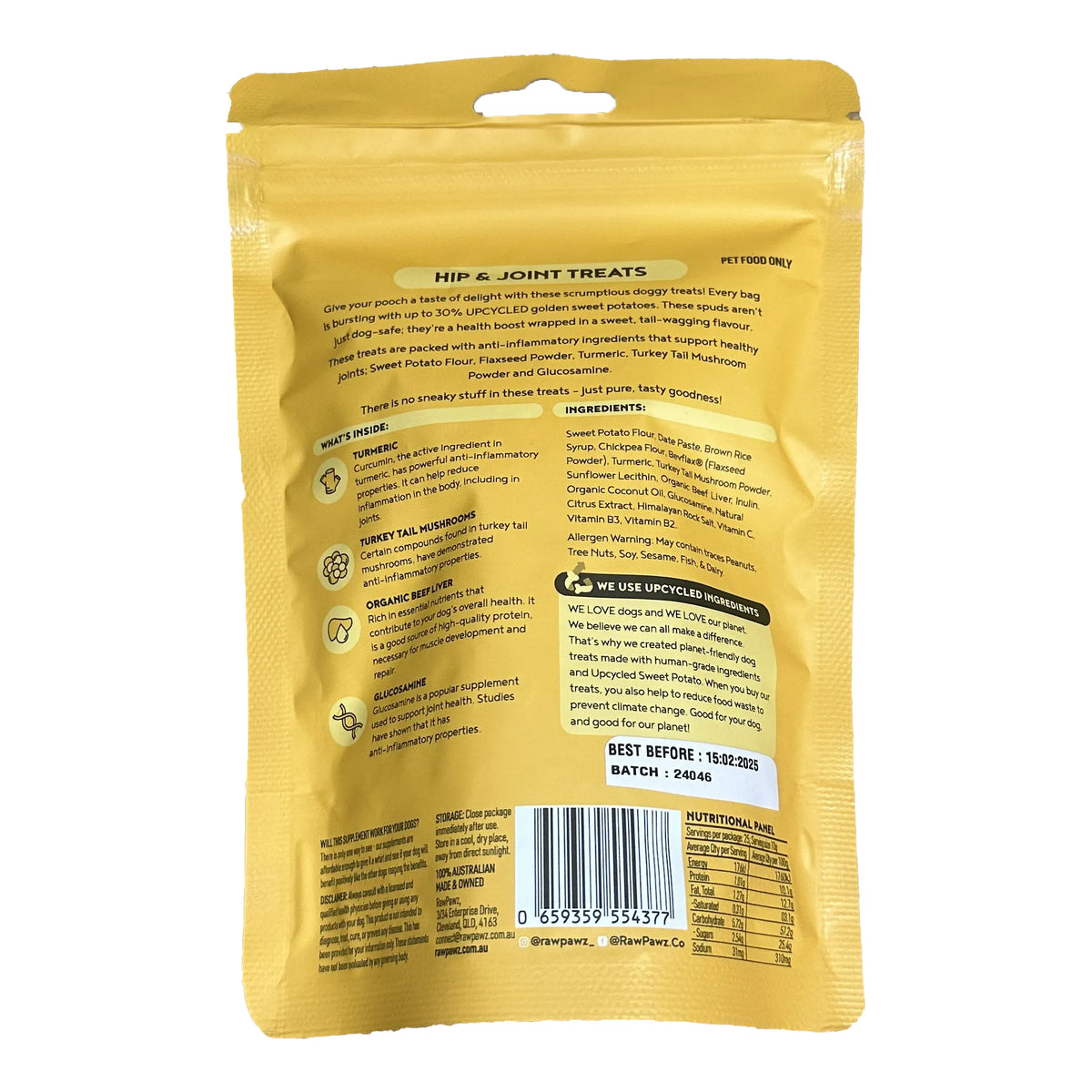 Give your senior dog a treat that not only satisfies their taste buds but also supports their overall well-being. Each bag is packed with up to 30% UPCYCLED golden sweet potatoes, offering a nutritious boost with a naturally sweet flavour they’ll love.