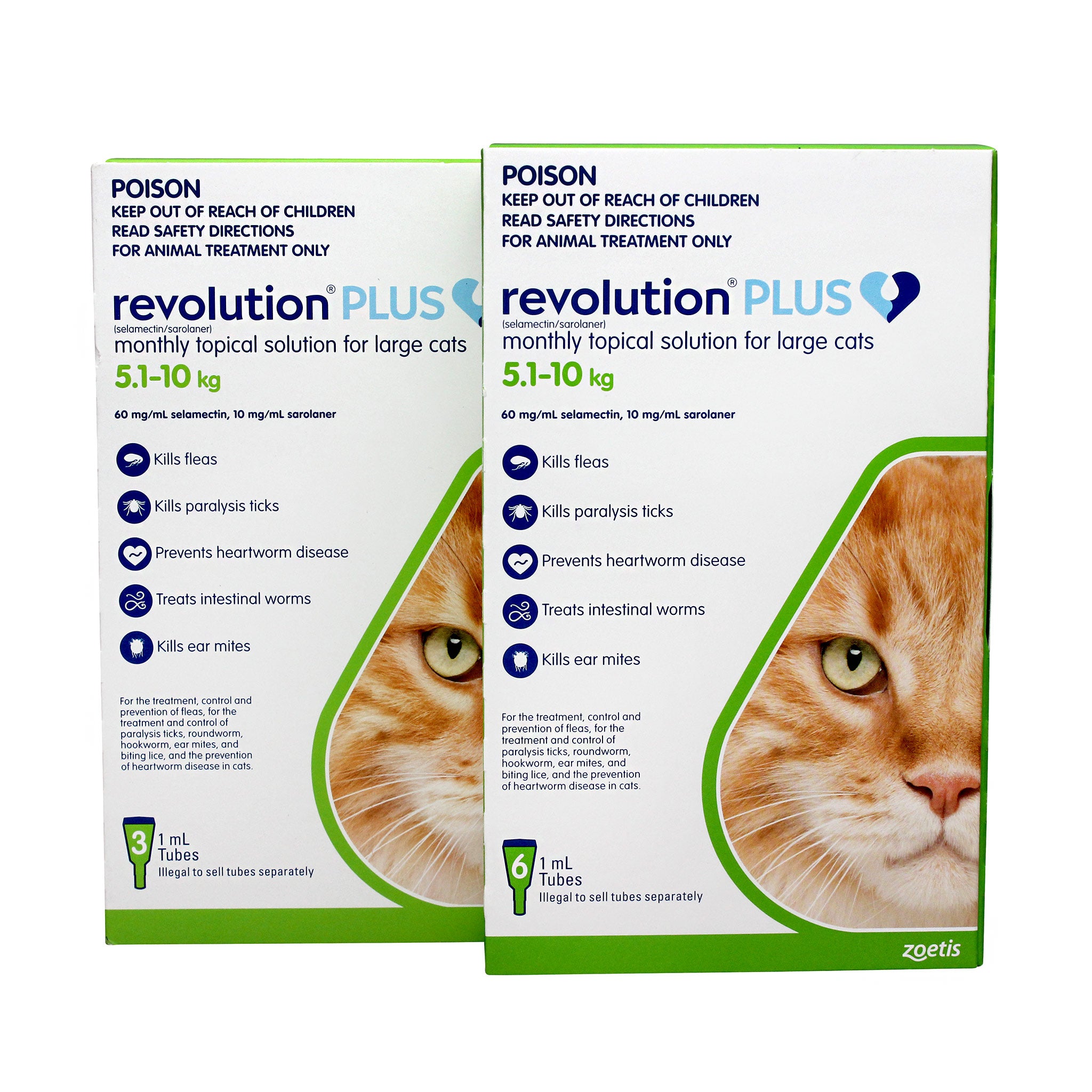 REVOLUTION PLUS is a simple-to-apply, quick-drying, small-volume, monthly topical parasiticides for the treatment, control and prevention of fleas, for the treatment and control of paralysis ticks, roundworm, hookworm, ear mites and biting lice, and the prevention of heartworm disease in cats.
