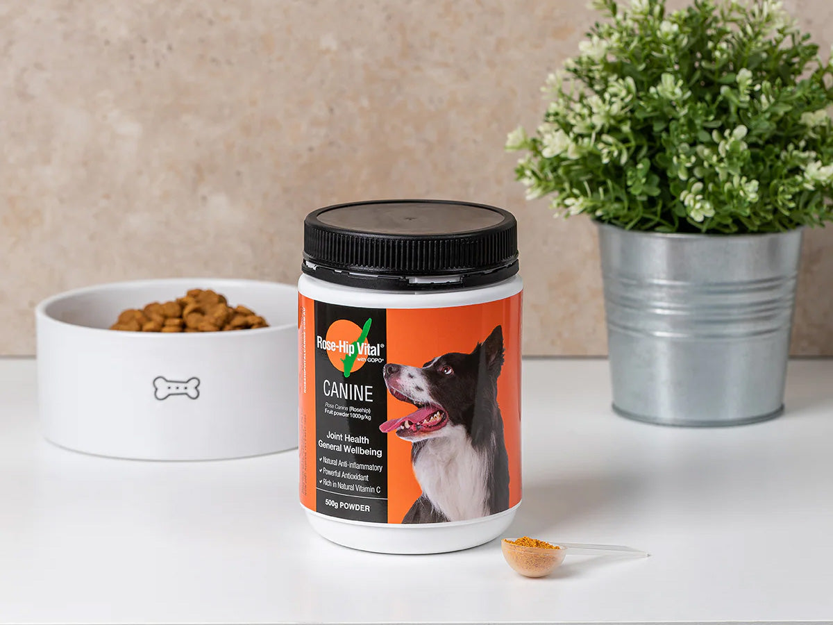 Rose-Hip Vital® Canine is a plant-based anti-inflammatory and immune system support for your dog's joint health and general wellbeing. Made from Rosehips manufactured with patented processes, Rose-Hip Vital® Canine is scientifically and clinically proven to reduce inflammation, protect cartilage, improve general health and improve performance.