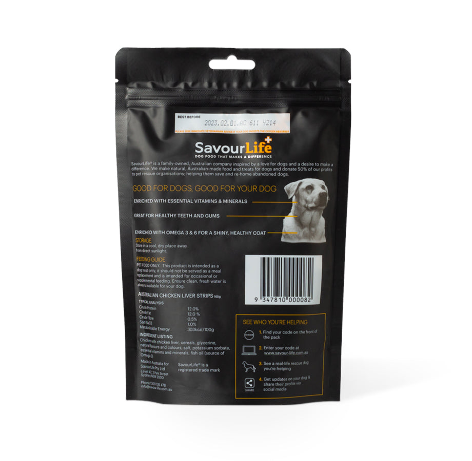 SavourLife’s delicious Australian Liver Strips are made with chicken, great for dogs with allergies to beef.