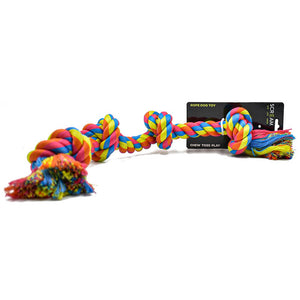 The Scream 4-Knot Rope dog toy is a brightly coloured rope that Screams fun!