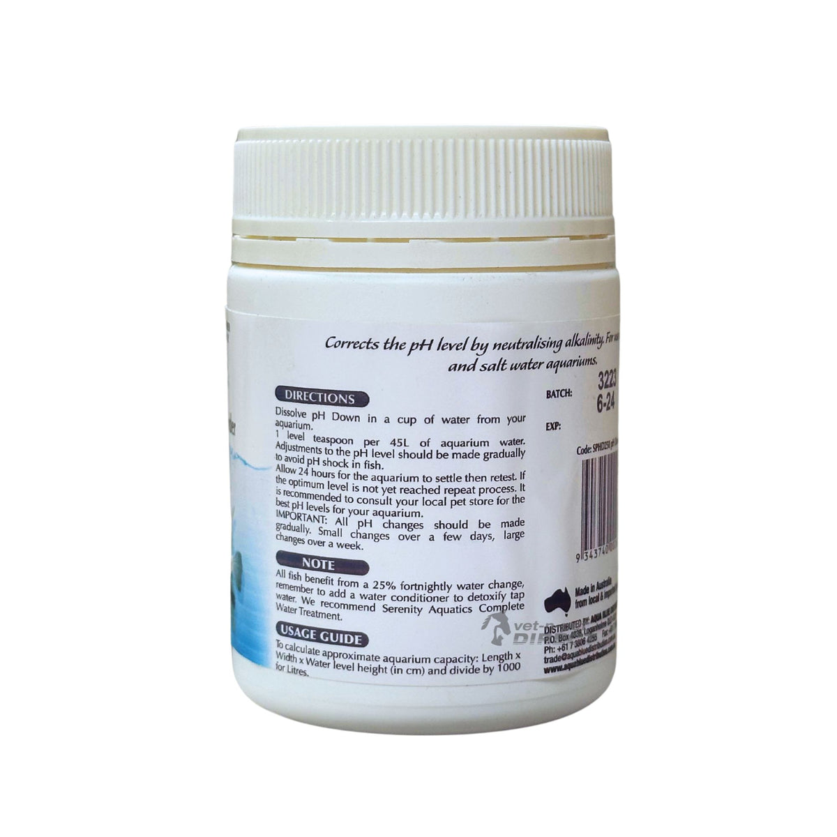 To use the product, dissolve pH Down in a cup of water from your aquarium, using 1 level teaspoon per 45 liters of aquarium water. It is crucial to adjust the pH level gradually to avoid pH shock in fish. Allow 24 hours for the aquarium to settle before retesting the pH level. If the optimum level is not yet reached, repeat the process. It is important to make all pH changes gradually, with small changes made over a few days and larger changes over a week. Additionally, all fish benefit from a 25% fortnightly water change. Remember to add a water conditioner to detoxify tap water.