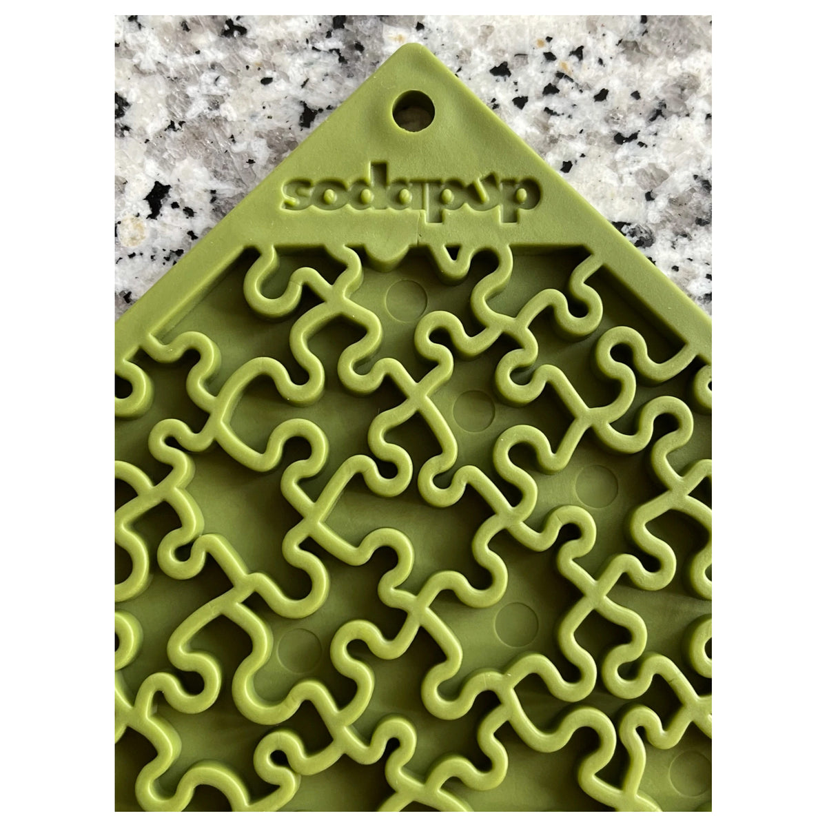 The SodaPup Jigsaw Emat Enrichment Mat is a licking mat with a jigsaw puzzle design.