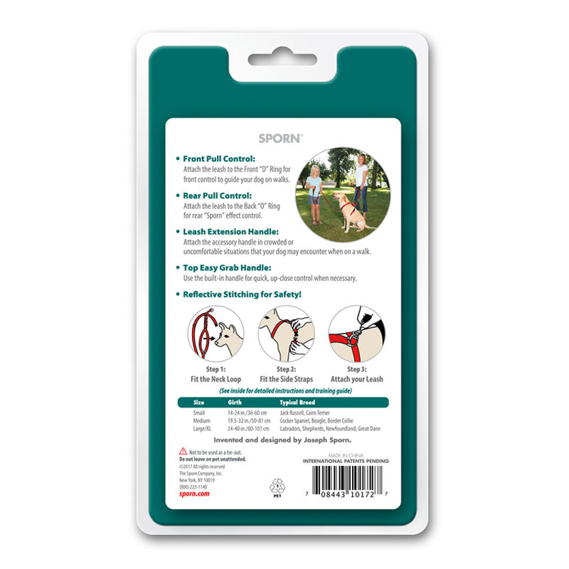 The Sporn Ultimate Control Harness is the latest addition to the line of SPORN control products! It's patented, comfort design gives the dog owner several ways to humanely control their dog when on the go. The harness is easy to put on and is guaranteed to start working instantly, using the "Sport Effect", without intensive training!