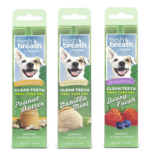 TropiClean Fresh Breath Clean Teeth Oral Care Gel has a unique blend of powerful, natural ingredients that removes and defends against plaque and tartar, providing fresh breath in fun flavours that dogs love!