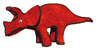Dinosaur Construction: Each toy is made with 2 layers of industrial grade luggage material and 1 layer of soft fleece on the outside. All of the layers are sewn together to make one super strong layer of material. Each toy is sewn together with 2 layers of linear stitching. After the toy is sewn together an additional piece of black trim is added to cover the four rows of stitching. This extra piece of black trim is sewn with 3 linear stitches to give the product a total of 7 seams! Now that’s one tough toy!