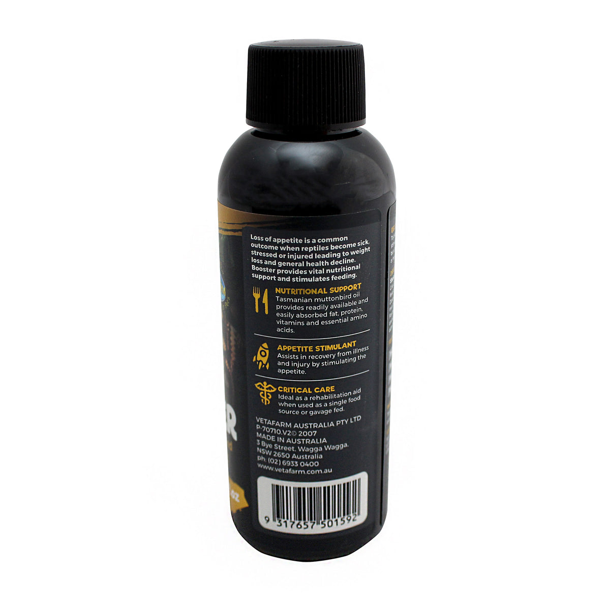 Vetafarm Ectotherm Booster contains Tasmanian Mutton-bird Oil, a highly palatable energy source, and balanced vitamins and essential amino acids. This formula is rich in the nutrients need for recovery.
