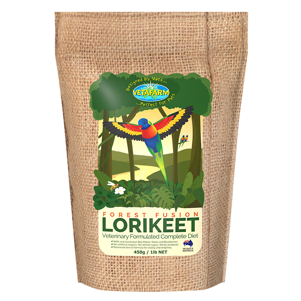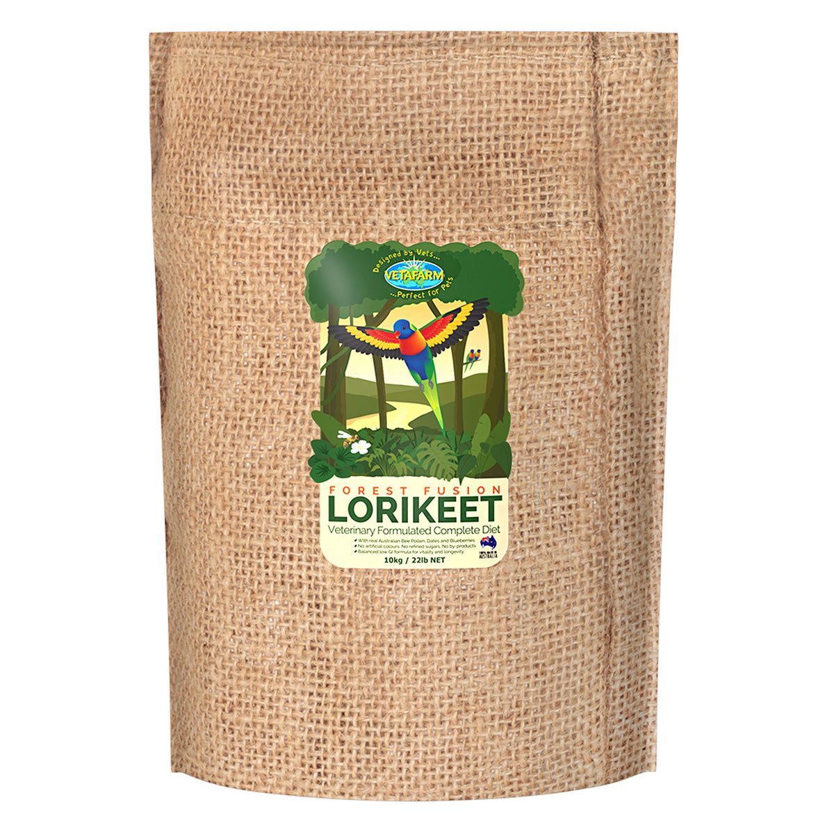 Make freely available as your birds primary diet. Forest Fusion Lorikeet may be fed dry, direct out of the packet or as a wet mix by adding a small amount of water.