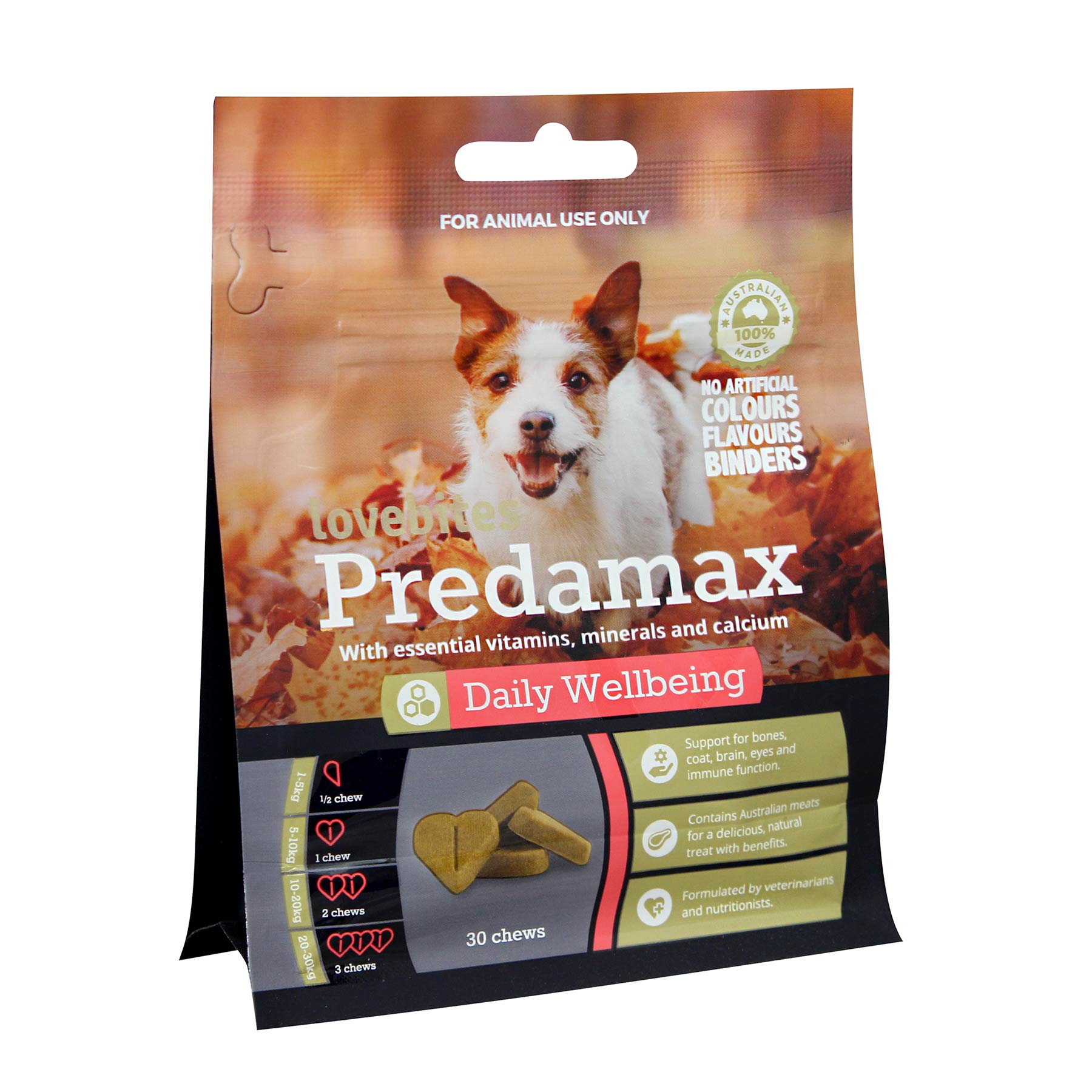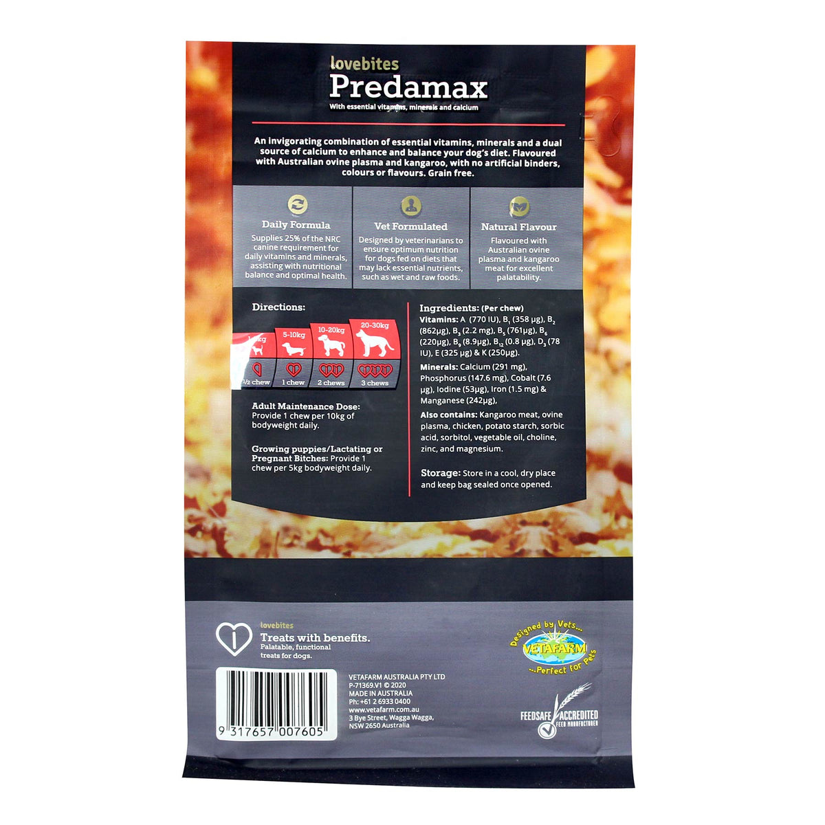 Vetafarm Predamax Lovebites Chews provide essential vitamins, minerals andcalcium for daily wellbeing. They are a naturally flavoured delicious treat, with benefits. Predamax Lovebites Chews are formulated by veterinarians and nutritionists.