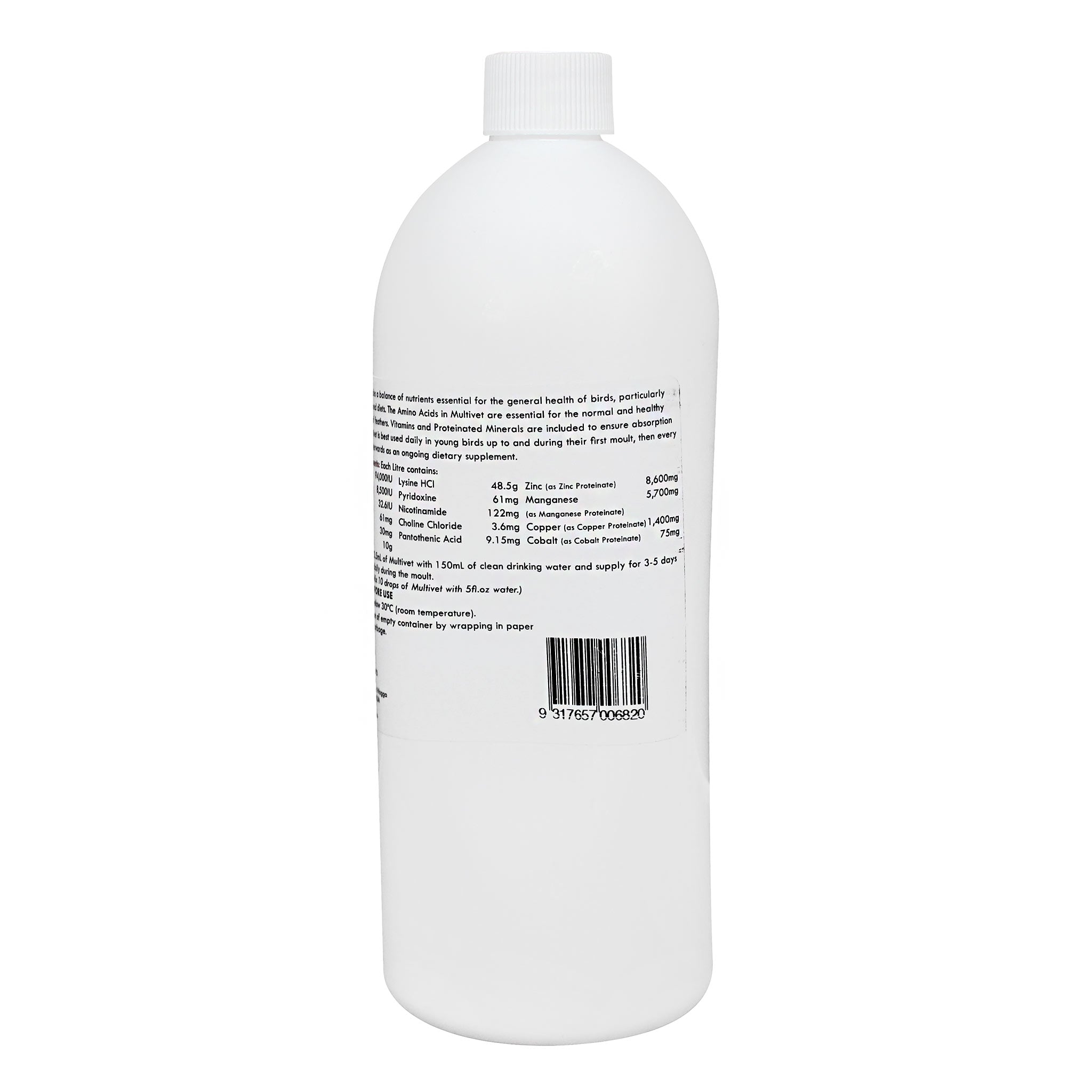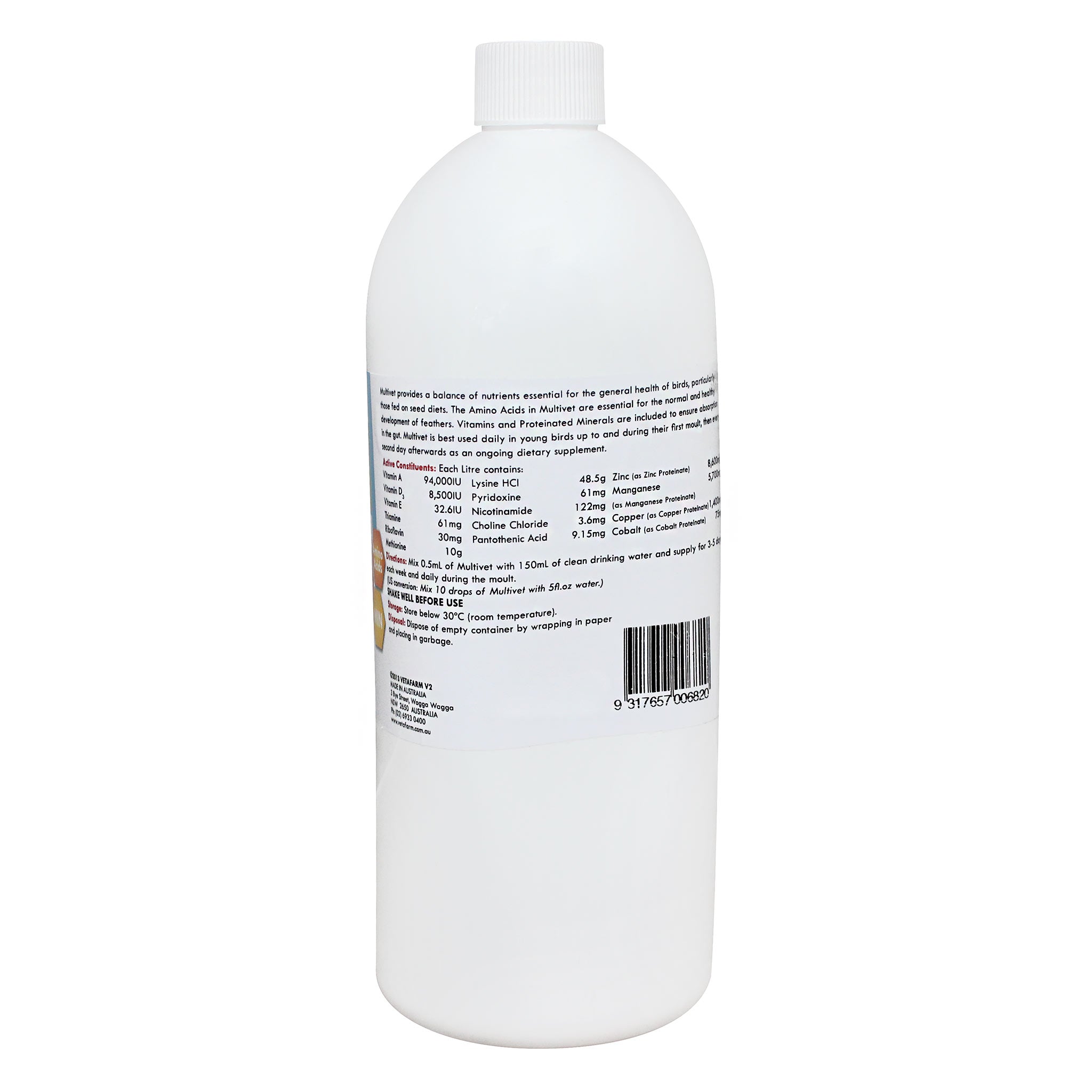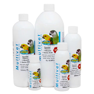 Multivet is best used daily in young birds up to and during their first moult, then every second day afterwards as an ongoing dietary supplement.