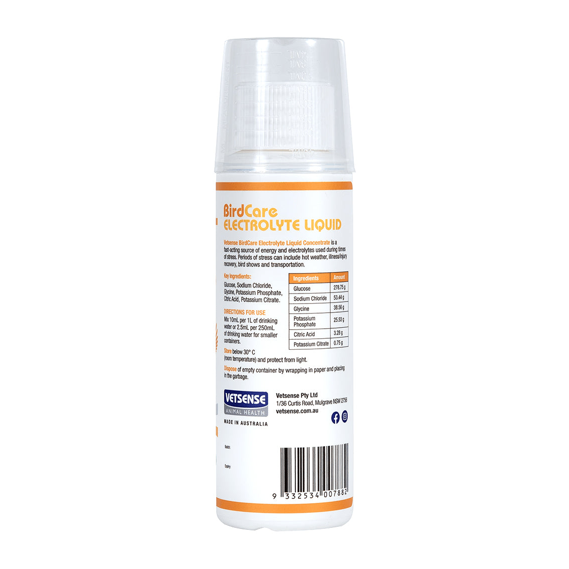 Vetsense BirdCare Electrolyte Liquid is tailored for rapid electrolyte replenishment. This liquid is ideal for birds during periods of stress, illness, or high temperatures.