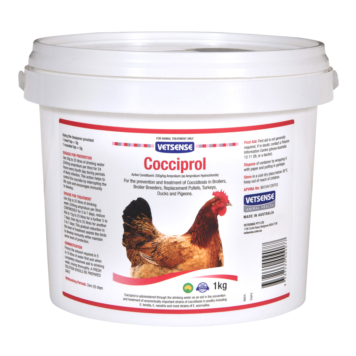 Premix the amount required into ½ litre of water first and when completely dissolved add to drinking water, mixing thoroughly. Example: Mix 5g of Cocciprol into ½ litre of water then add the remaining 3.5L of water to make up the required 4L solution.