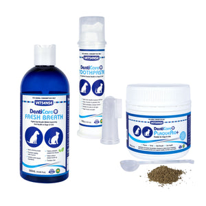 The Vetsense DentiCare range provides a complete oral care routine when used together. Fresh Breath, PlaqueAid+, and the Toothpaste Kit provide a holistic approach to your pet's oral care needs.