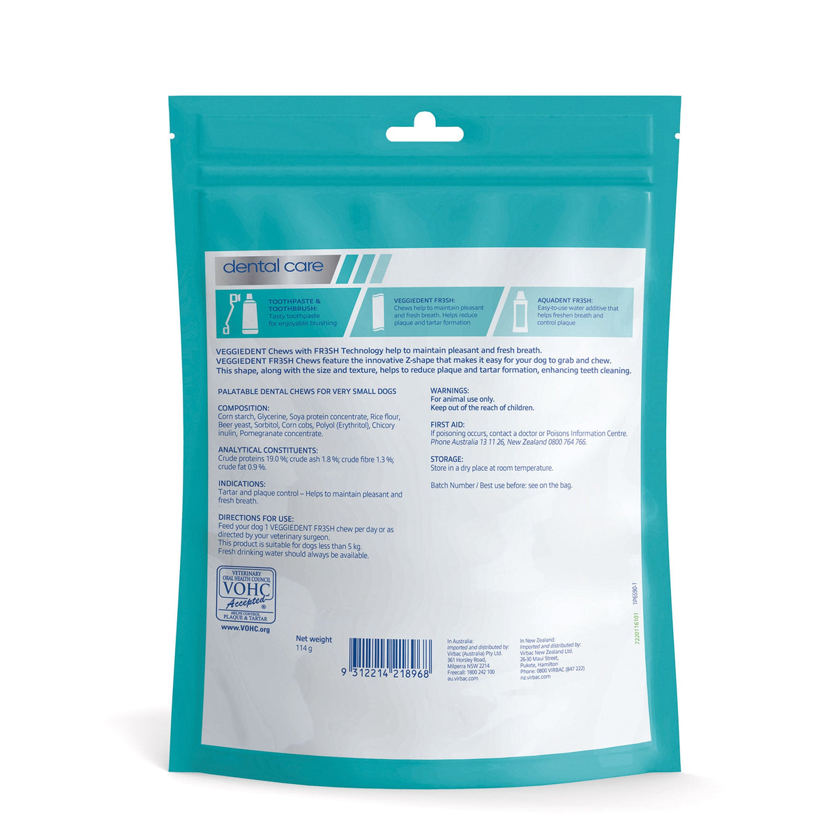 Veggiedent FR3SH Dental Chews feature a 3-way performance that cleans teeth, freshens breath and supports proper digestion.
