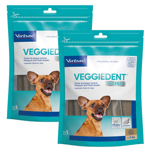 Generally, Veggiedent FR3SH Dental Chews for Dogs can be given once daily. Always talk with your veterinarian before making changes to your dog's dental health care.