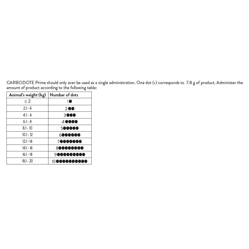 Administration of Carbodote Repeat may be repeated every 4 to 6 hours for up to 24 hours. Some cases may require an initial administration of Carbodote Prime to facilitate elimination of the toxin.