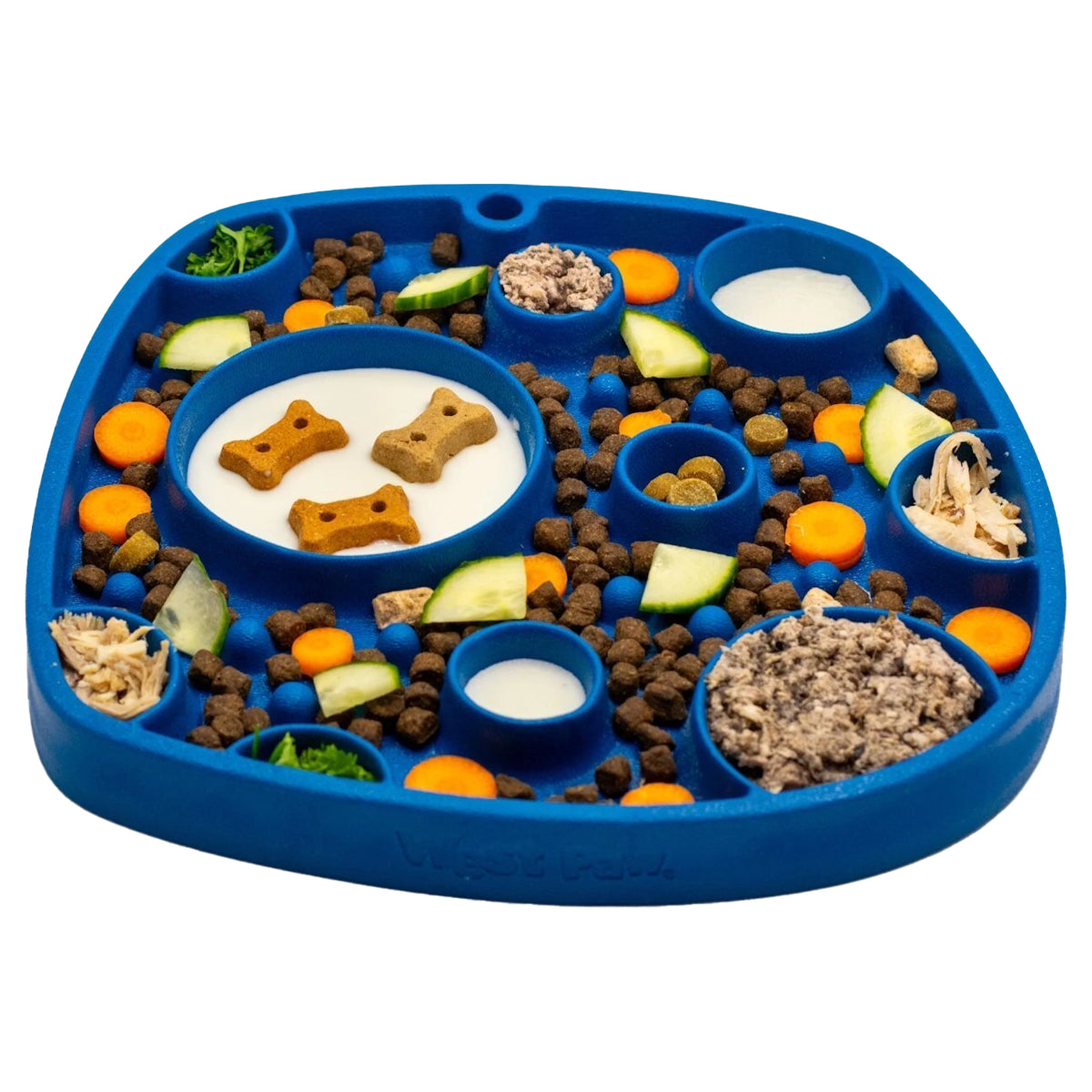The West Paw Feast Mat is an innovative all-in-one enrichment mat that seamlessly blends a slow feeder with a lick mat, ensuring every meal is a delightful adventure.