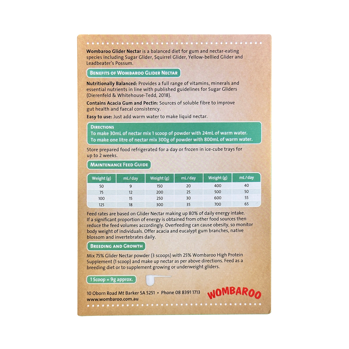 Wombaroo Glider Nectar is a balanced diet for gum and nectar-eating species including Sugar Gliders.