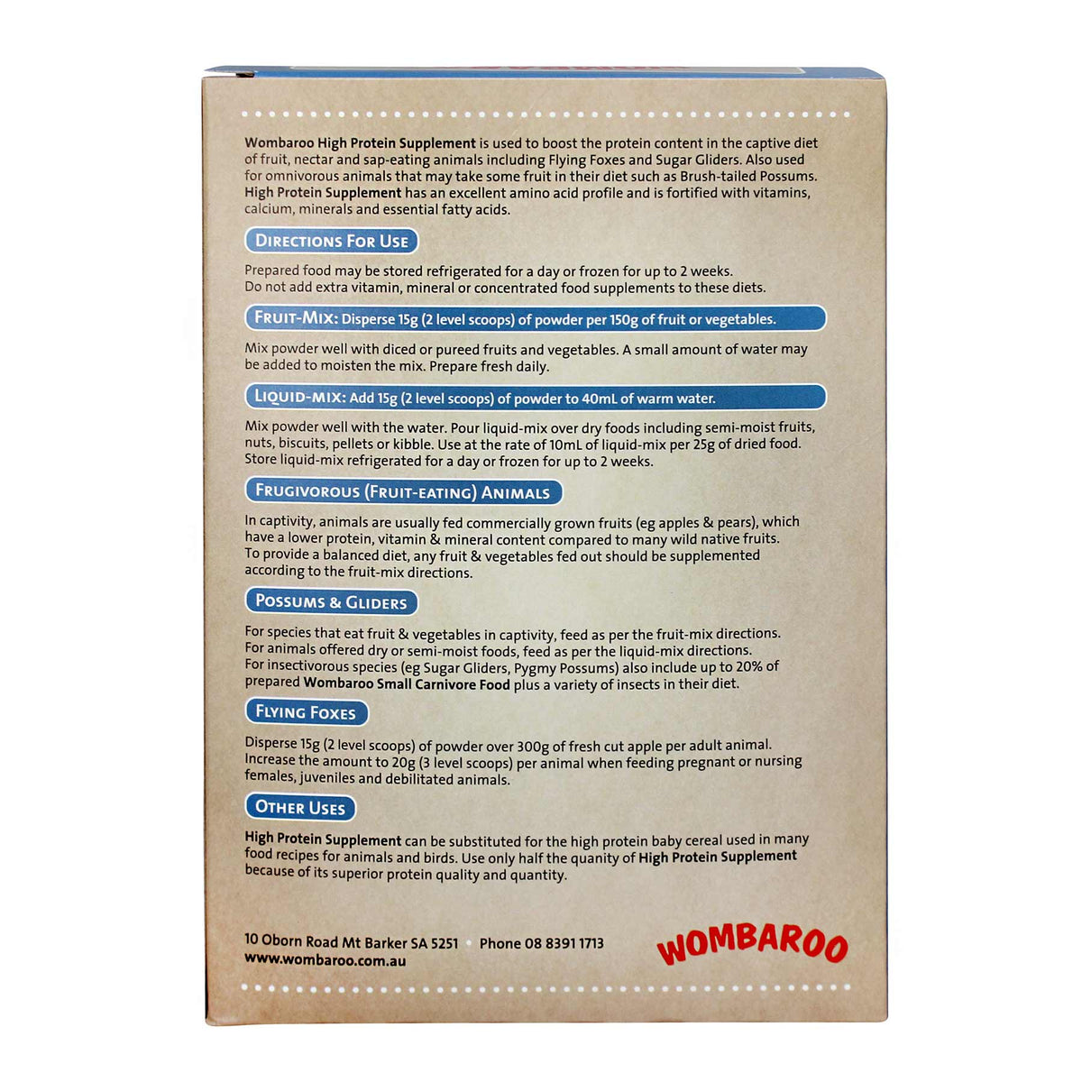 Wombaroo High Protein Supplement is used to boost protein content in the diet of fruit & nectar eating animals including Sugar Gliders, Possums & Flying Foxes.