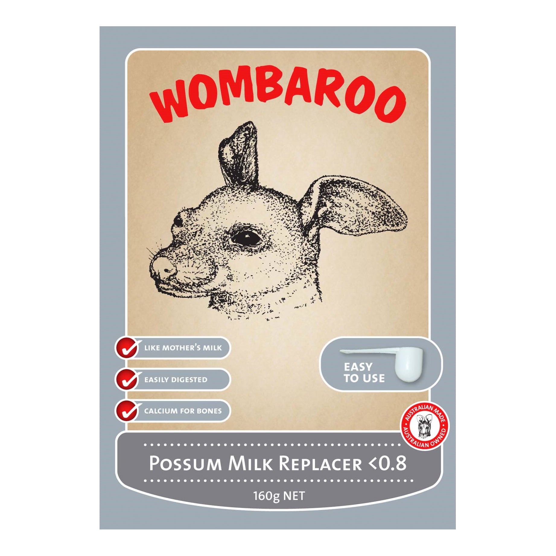 This is Wombaroo Possum Milk substitute < 0.8 for possum & glider joeys with less than 80% of their pouch life completed.