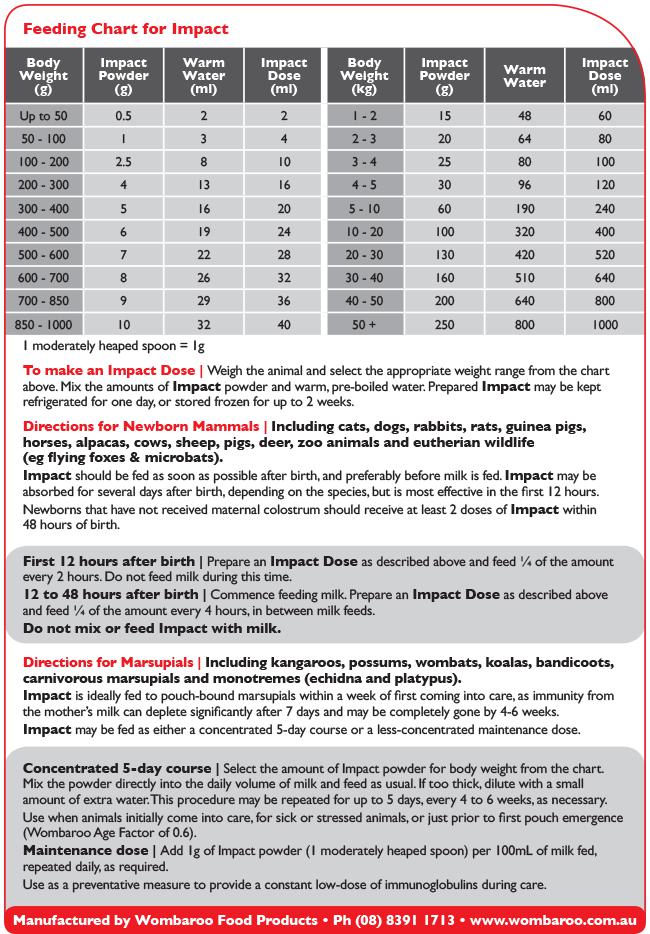 Mix and feed Impact with milk for marsupials.