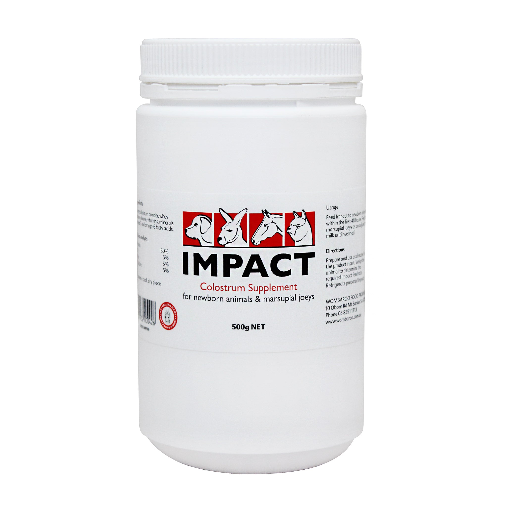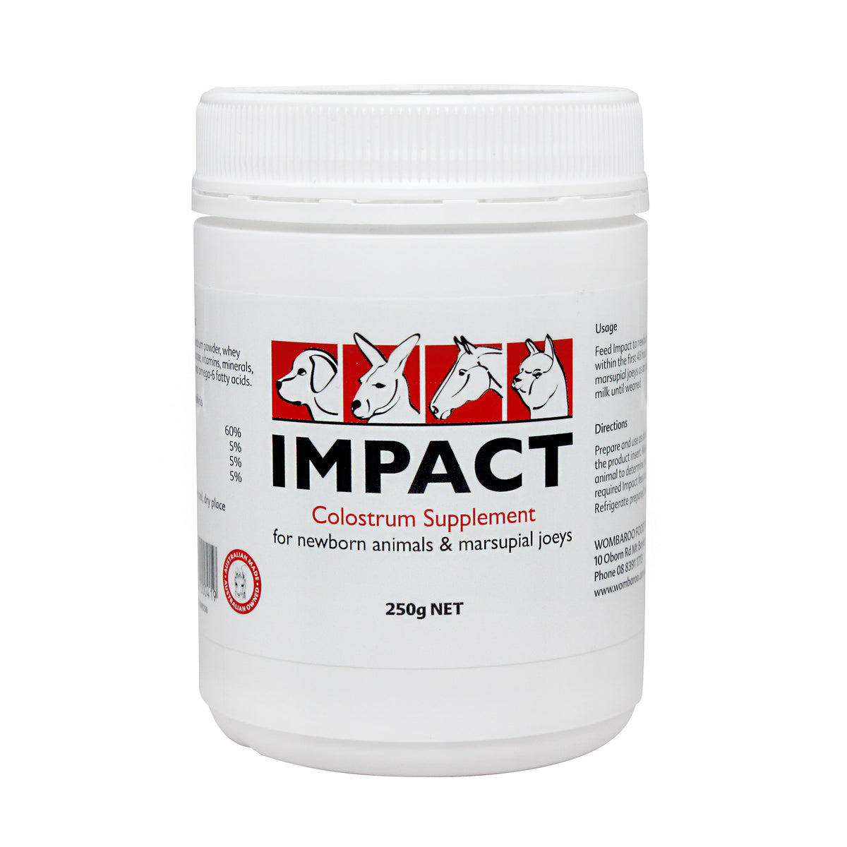 Colostrum contains high levels of immunoglobulins and antibacterials such as lactoferrin, lysozyme and lactoperoxidase that provide immunity and intestinal protection to young animals. Impact Colostrum Supplement is made from powdered bovine colostrum with added lactalbumin, omega-3 and omega-6 fatty acids, vitamins and minerals.