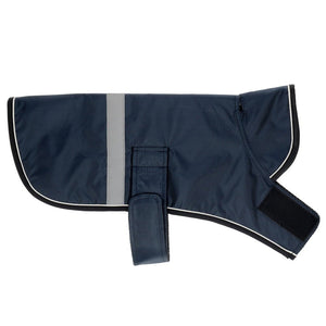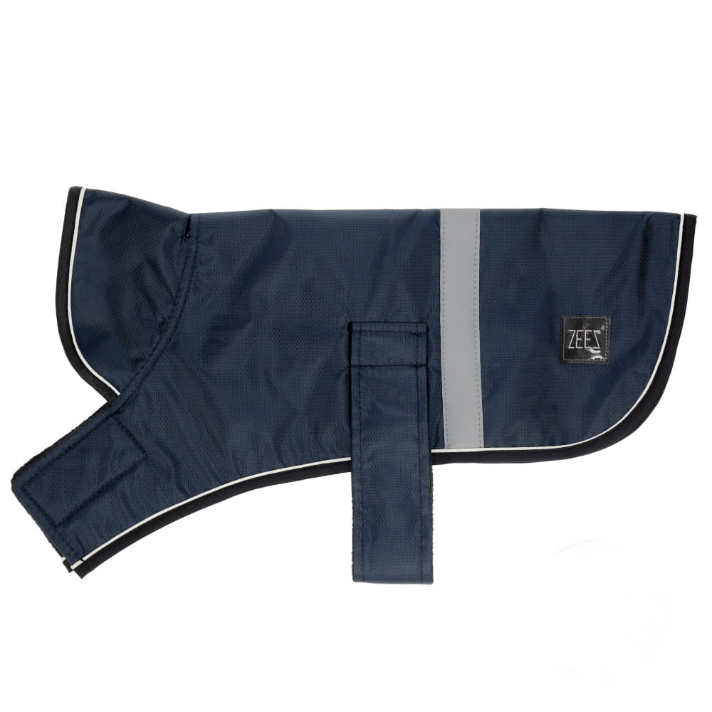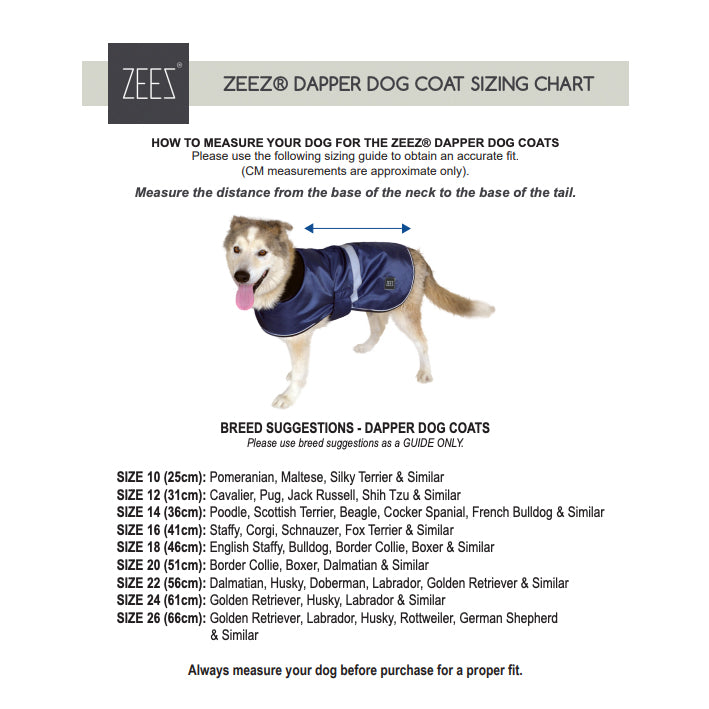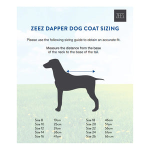 ZeeZ Dapper Dog Coats are made from a tough, 420 denier jacquard polyester with a PU coated outer shell that is water resistant and showerproof, keeping your dog drier on rainy days!